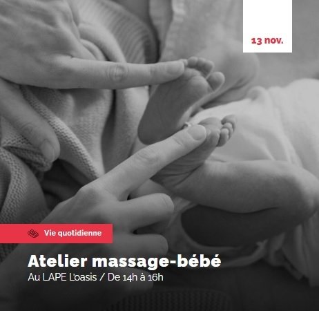A Schiltigheim, l'équipe de PMI de la Collectivité européenne d'Alsace propose un atelier massage-bébé au LAPE L'Oasis pour les enfants de 3 mois jusqu'à la marche.