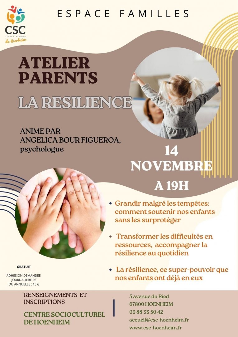 L'Espace familles vous propose un temps d'échanges entre parents sur la résilience animé par Angelica BOUR FIGUEROA, psychologue.