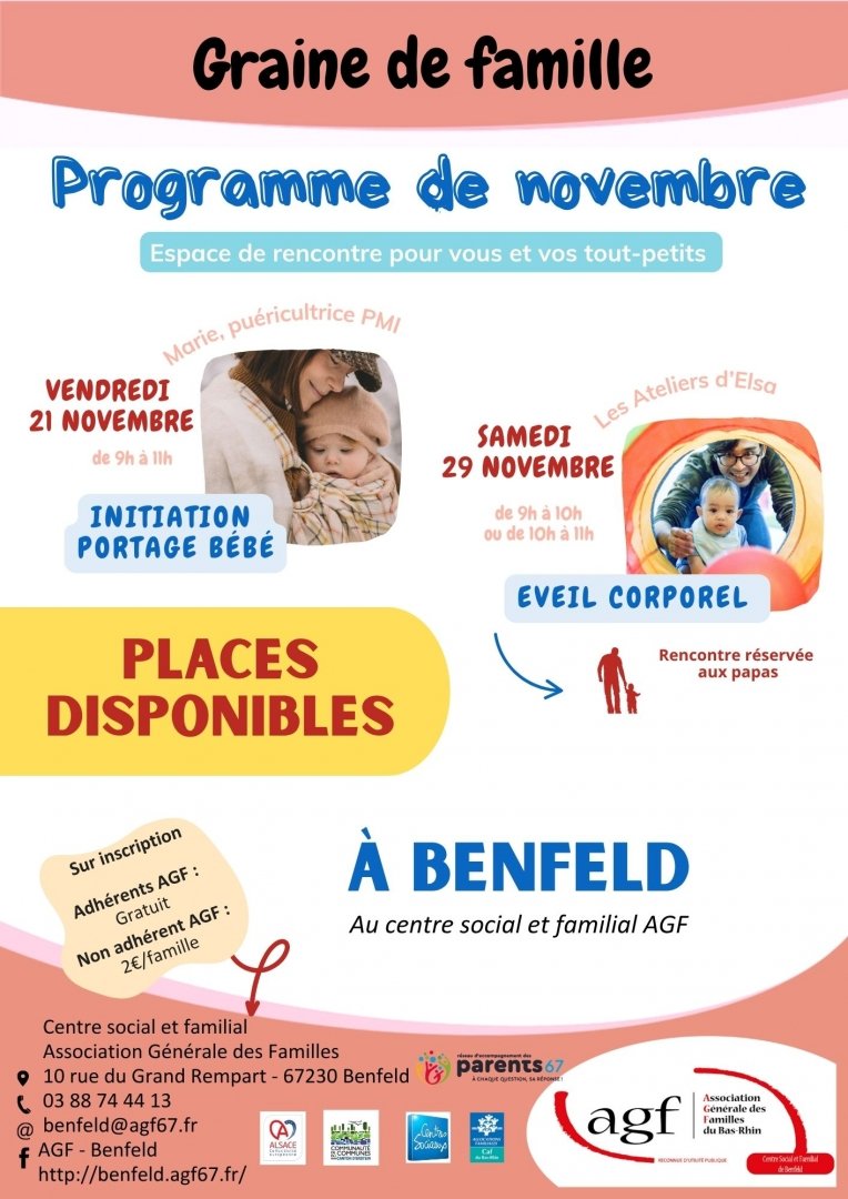 Sur inscription : 03 88 74 44 13 ou benfeld@agf67.fr