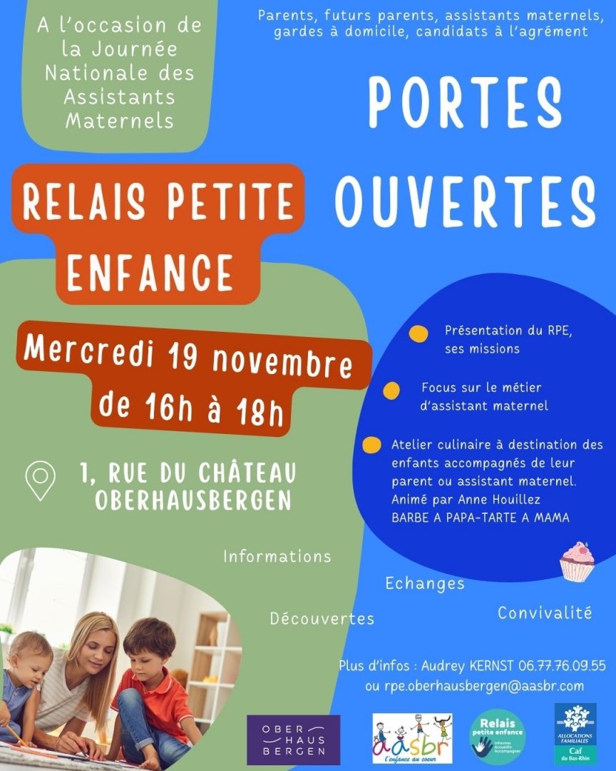 Parents, futurs parents, assistants maternels, gardes à domicile, candidats à l'agrément, le Relais Petite Enfance d'Oberhausbergen a le plaisir de vous inviter à une matinée portes ouvertes à l'occasion de la Journée nationale des assistantes maternelles.