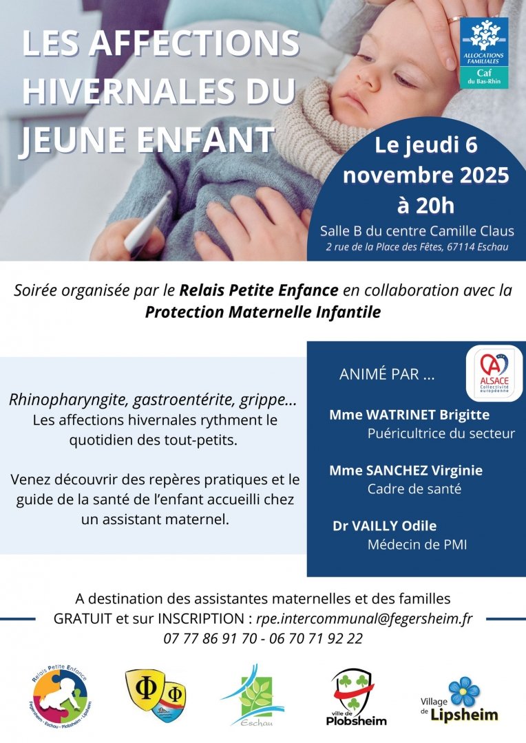 Le Relais Petite Enfance Fegersheim Eschau Plobsheim Lipsheim vous invite à une soirée d'information : Affections hivernales chez l'enfant accueilli chez une assistante maternelle